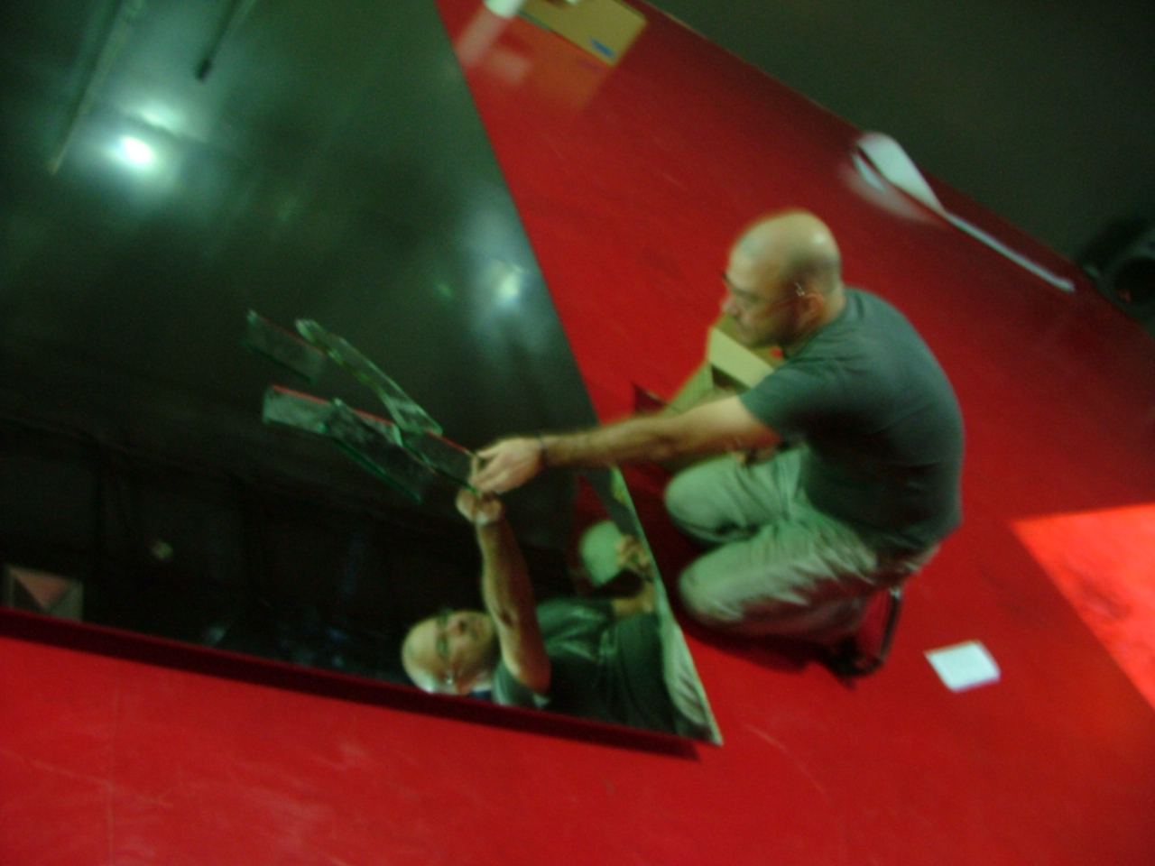 Este aqui foi o processo de ocupação da Grande Galeria do Palácio das Artes para a montagem de "Retrovão". Foi construída uma sala com uma grande área de retroprojeção. Ela foi inteiramente coberta por vinil vermelho e chumbo, criando um ambiente estranhamente brilhante. Nela, um vídeo principal era refletido em um imenso espelho no chão. Uma outra projeção secundária apontava do teto para um nicho de pedras no chão. E havia ainda a "Víbora_mantra".Os primeiros testes nos estúdios da Movieart em São Paulo.